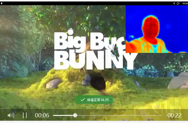 在大屏上安裝熱成像雙光測溫模塊,直接實現(xiàn)廣告播放及多人測溫。有人時測溫,無人時播放廣告。