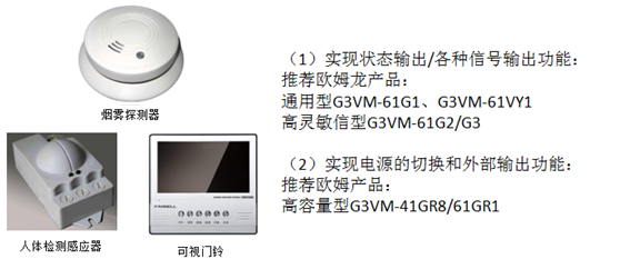 (1)安防設備應用:比如煙霧探測器、人體檢測感應器、可視門鈴等,繼電器在產品上起的作用主要為產品狀態指示、控制照明電源切換等。
