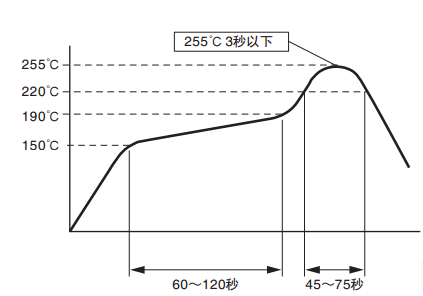 在下圖的端子溫度曲線范圍內(nèi),進行回流焊接。有些回流焊接的裝置峰值很高,因此請務(wù)必預先進行確認試驗