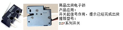 (3)產(chǎn)品推廣三:商品出貨電子鎖,推薦使用歐姆龍小型微動(dòng)開關(guān),主要是在出貨完成后給信號(hào)主機(jī),體積已完成出貨:
