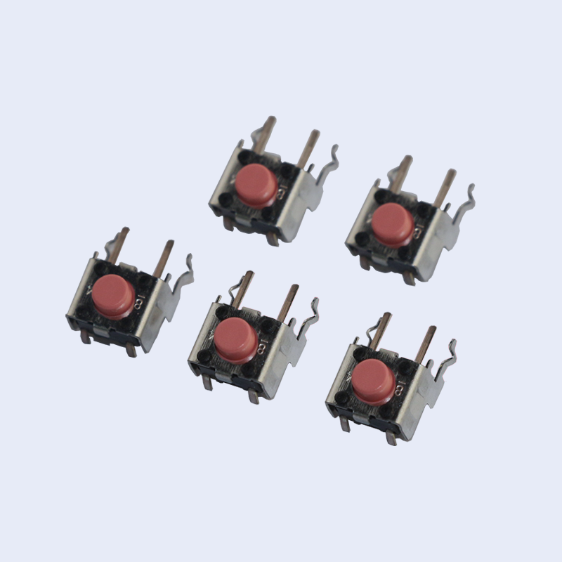 B3F 輕觸式開關 基板插入安裝型,6mm方形、12mm方形及橫向操作型、鍍金接點、徑向帶裝型等,品種齊全 ? 實現輕快的按觸感及高壽命 ? 備有可用于通用的徑向帶狀部件插入機的帶狀規格 ? 備有可以在長時間內保持穩定接觸和絕緣的鍍金型。 ? 凸型頂塊上可以安裝鍵頂(B32系列)。 B3F 基板插入安裝型,6mm方形、12mm方形及橫向操作型、鍍金接點、